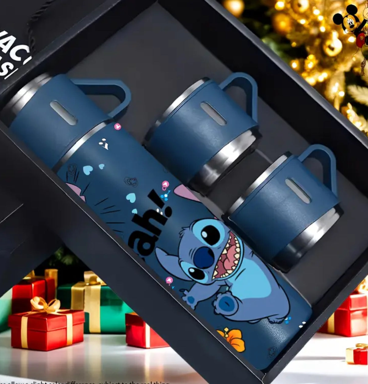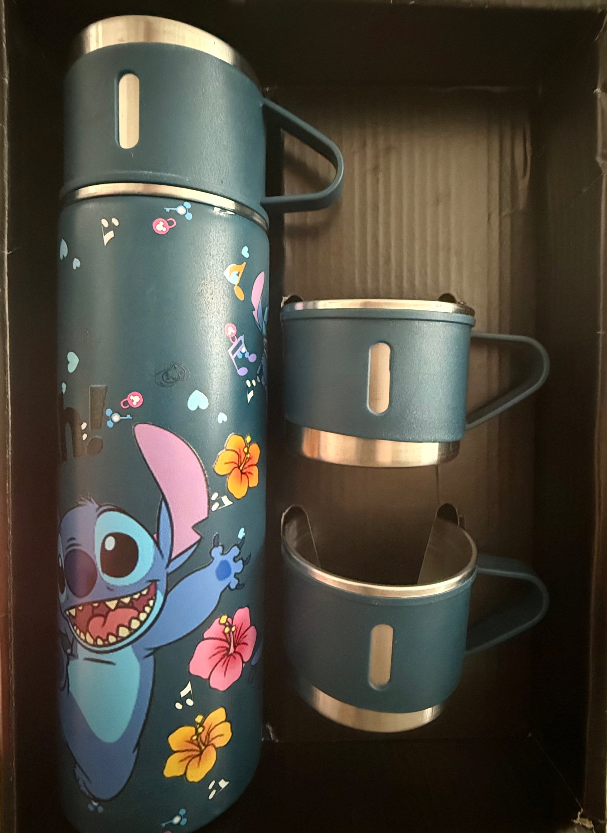 Thermosflaschen-Set mit Stitch-Motiv (inkl. 2 Bechern) petrol-blau