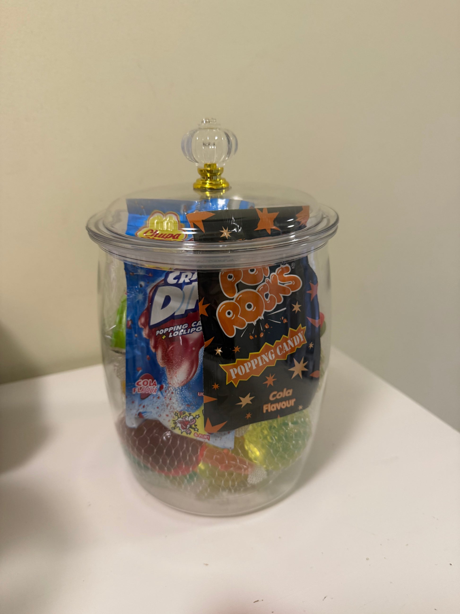 Überraschungs-Glas aus Acryl – gefüllt mit Süßigkeiten